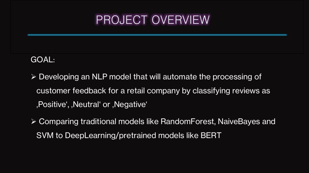 Model training to automate the processing of customer feedback by classifying reviews as ‚Positive‘, ‚Neutral‘ or ‚Negative‘ (deployment via Streamlit)