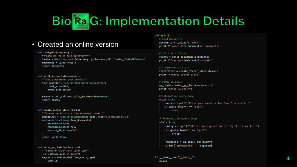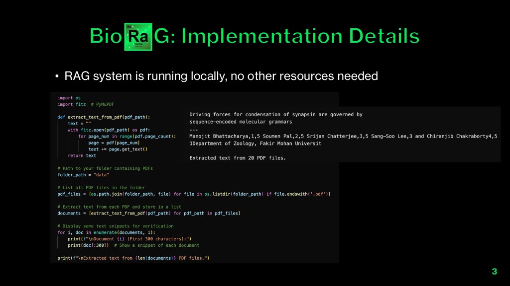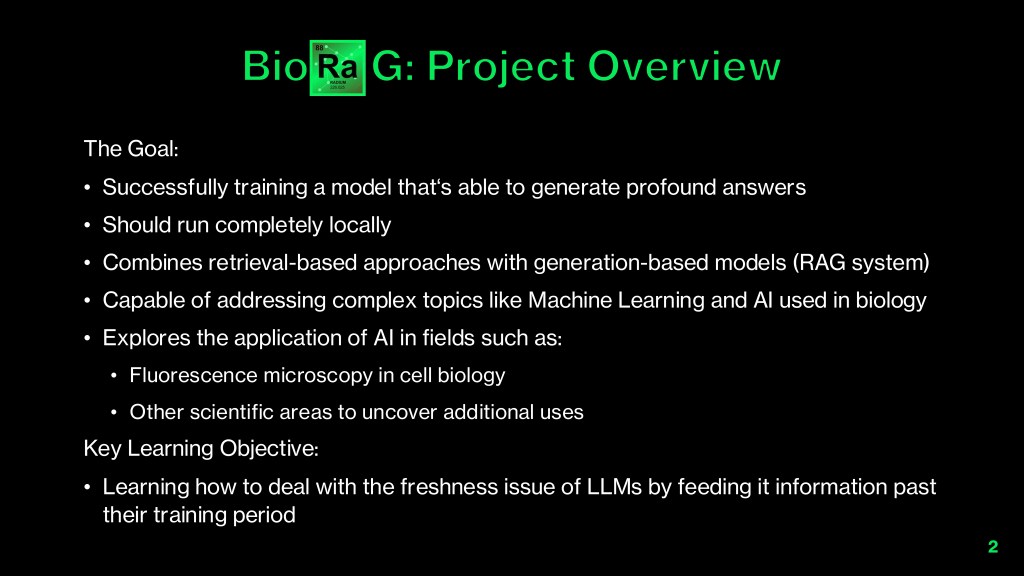 BioRAG RAG system to answer questions on topics related to the use of Machine Learning and AI in biology