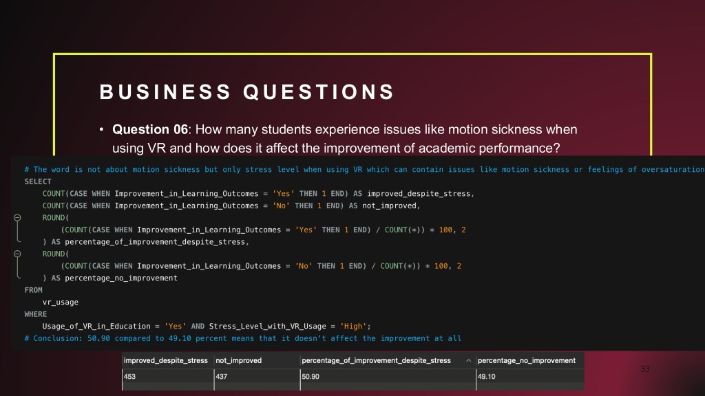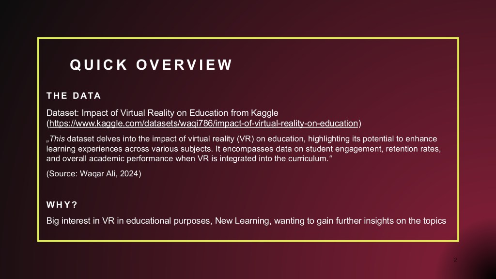 Exploratory data analysis on the impact of using Virtual Reality in education